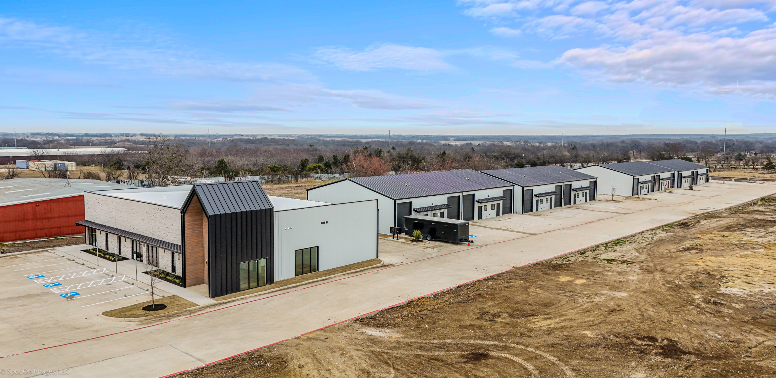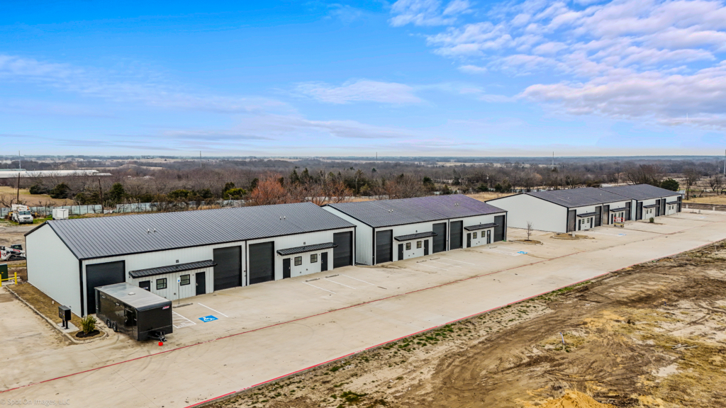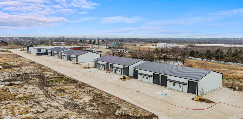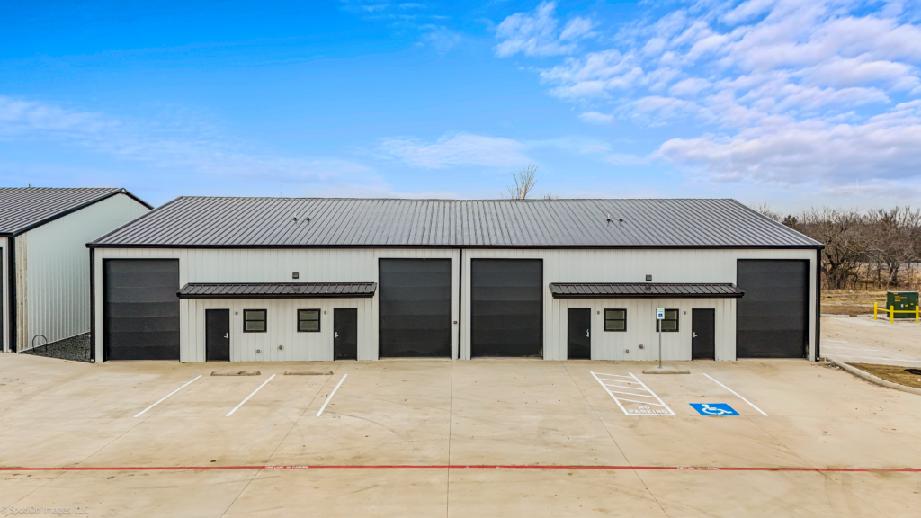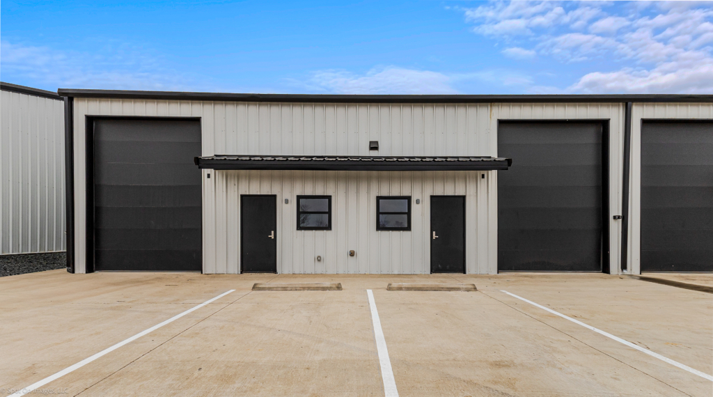 This project features 10 individual commercial and light industrial buildings with substantial parking for the store fronts. The two front buildings are 6,000 square-foot buildings with offices, warehouse space, and covered entryways, each set to house 2-4 individual businesses. Behind those, we have two rows of four 6k sqft buildings, each of which can be home to 3-4 businesses.